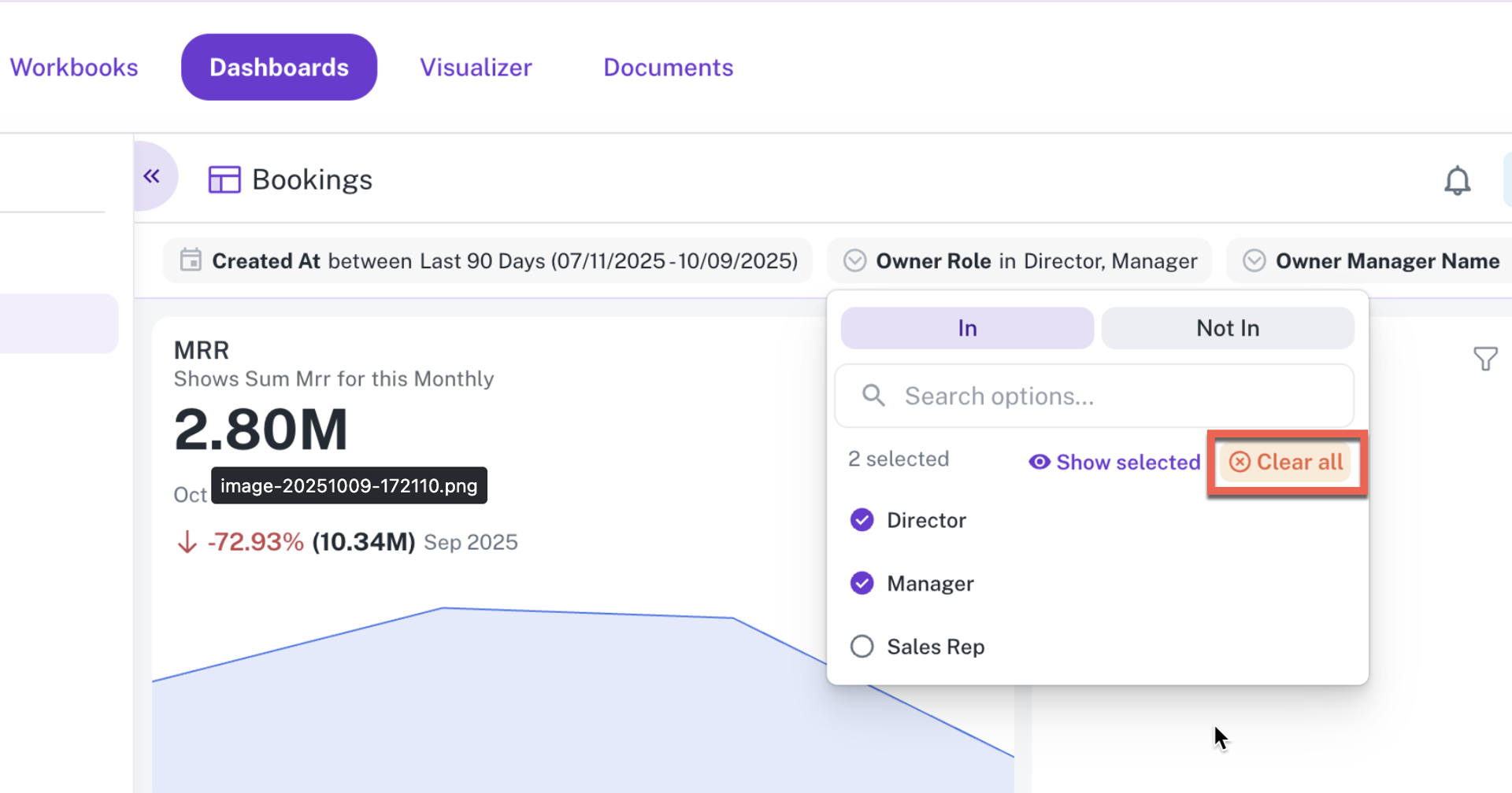 This feature allows users to instantly remove the current value or selection from these parameter types with a single click. Instead of manually clearing the text input or reverting the single select to its default state, the new Clear All option offers a faster way to reset the parameter and refresh the dashboard view.