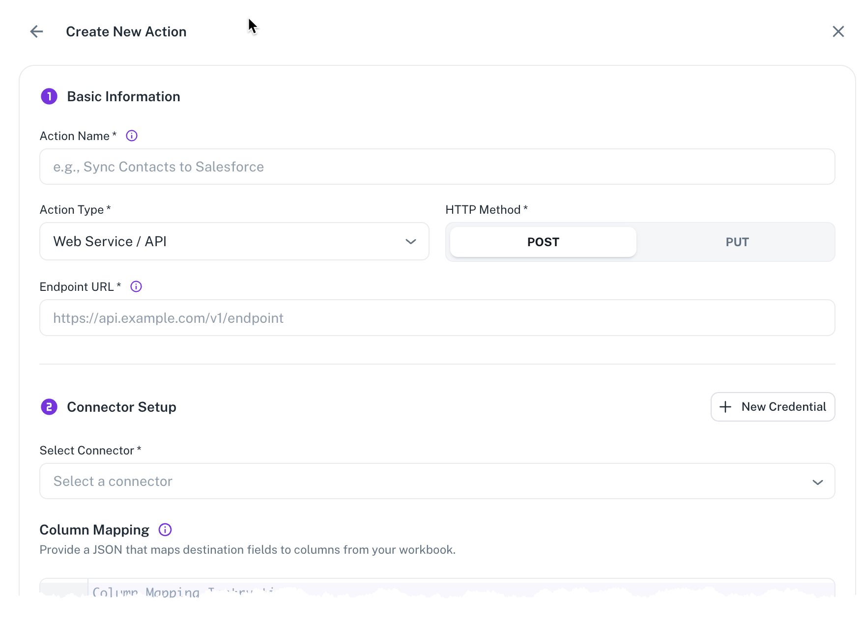 Introduced a dedicated UI within Workbooks to simplify the creation and management of Web Service / API Actions (Reverse ETL). This enhancement allows users to define, modify, and delete custom API actions directly within the Workbook settings.
